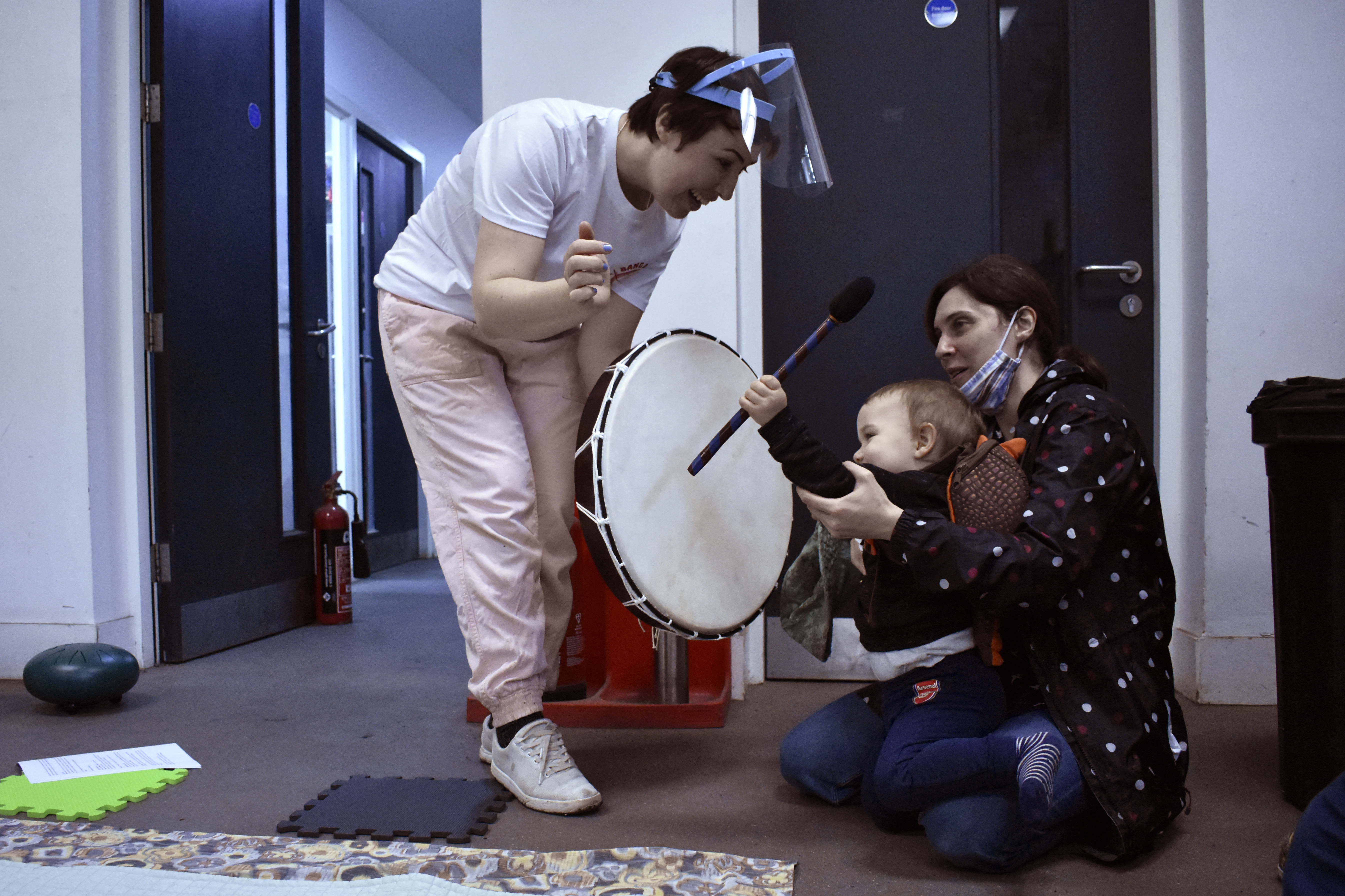 We made explorations into the world of rhythm, making small hand drums out of old coffee tins and playing on a variety of drums including a snare, tom toms, shaman drum and a thunder drum!