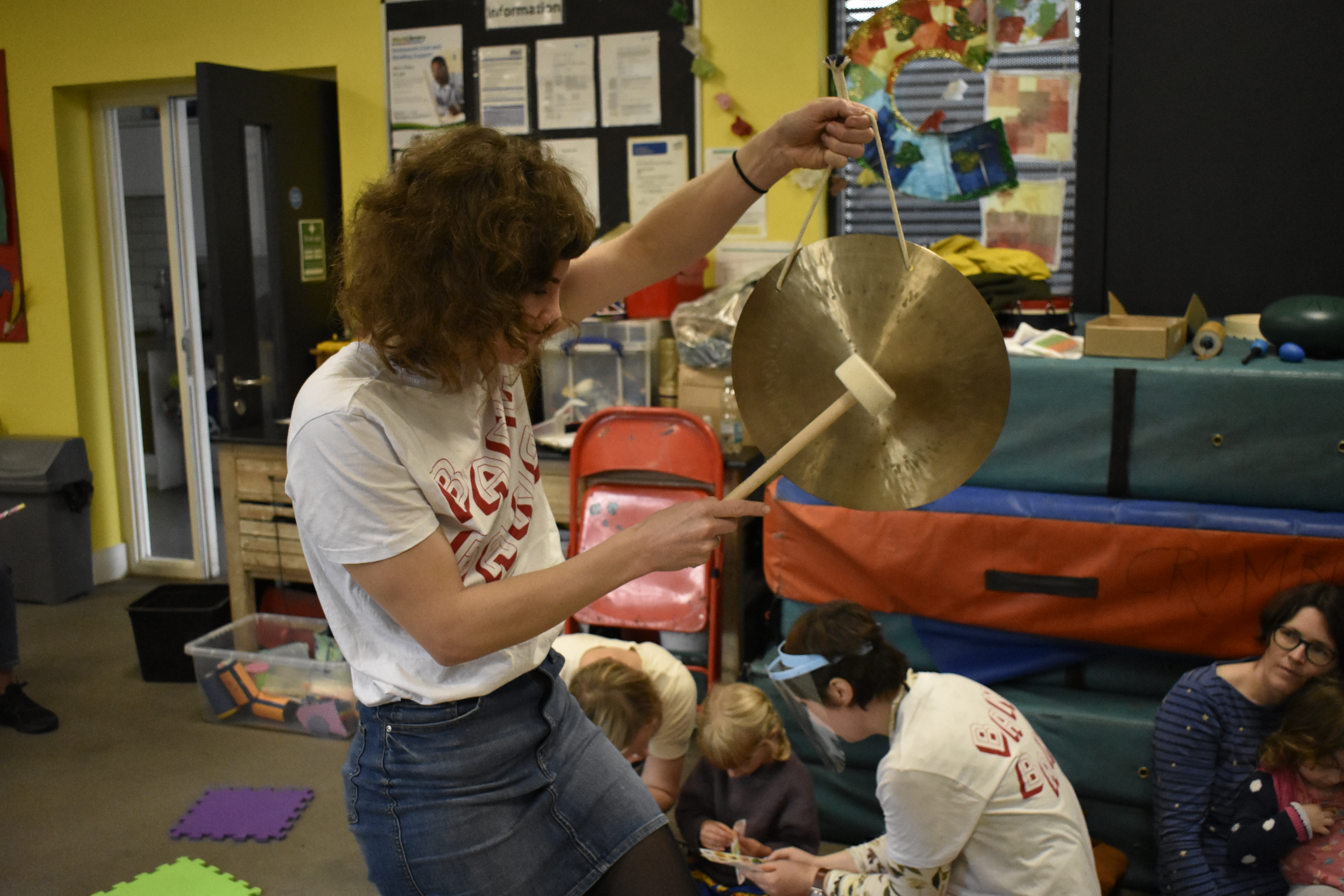 Our second workshop featured cymbals and body percussion. We learned the ‘We Will Rock You’ beat and made our very own drumsticks!