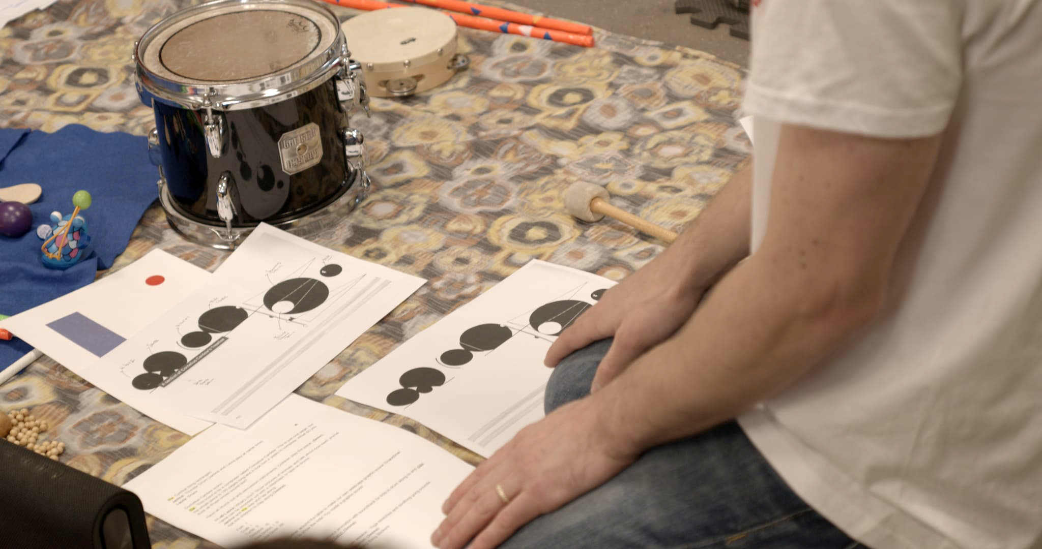 Today’s workshop was an introduction to basic graphic notation. We looked at a page from Cornelius Cardew’s Treatise, made our own aquatic-themed graphic score and performed along to an abstract animation made by our very own workshop facilitator Janine A’Bear!
