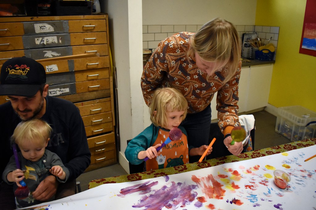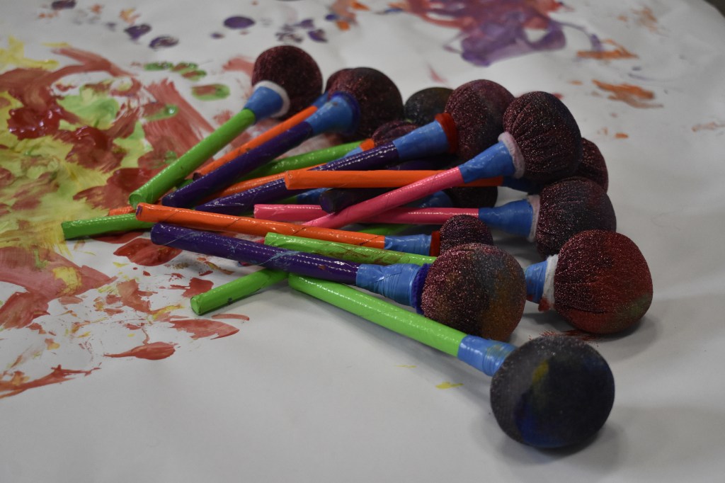 We also made our beats into visual patterns by dipping the beaters into paint and drumming on paper, creating a long collaborative abstract painting in the process.