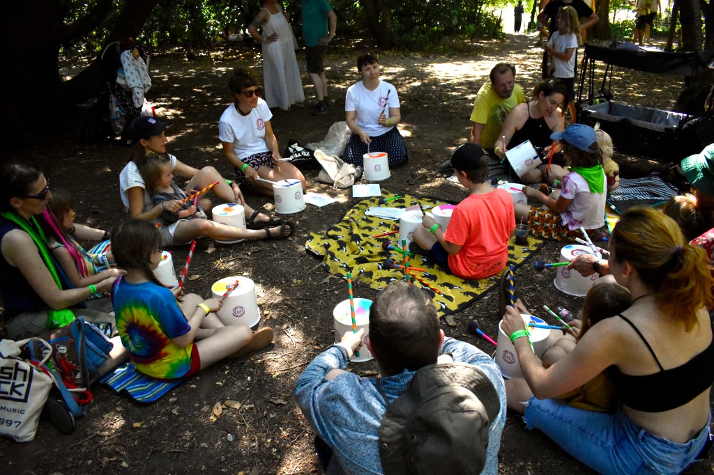 We’ve come back on a high, having seen and experienced so much. We caught up with old friends and made many new ones. We had a great time facilitating the bucket drumming and sound walk workshops. Both the kids and adults were really engaged!