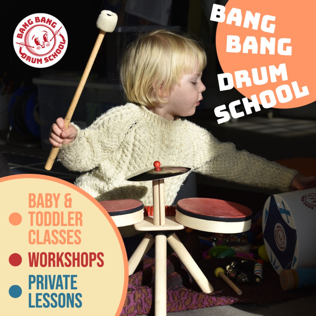 Bang Bang Drum School is a London-based community arts project that provides private lessons for children aged 2 and over, beginner adult sessions, group workshops for babies, toddlers and older children, as well as one-off workshops for events and festivals.